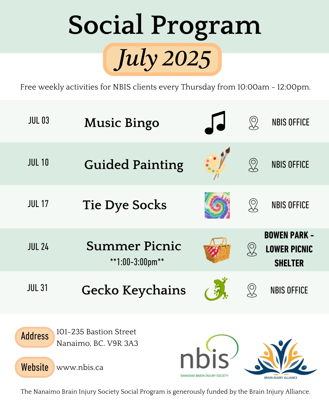 The NBIS Social Program is funded by the BC Brain Injury Alliance.