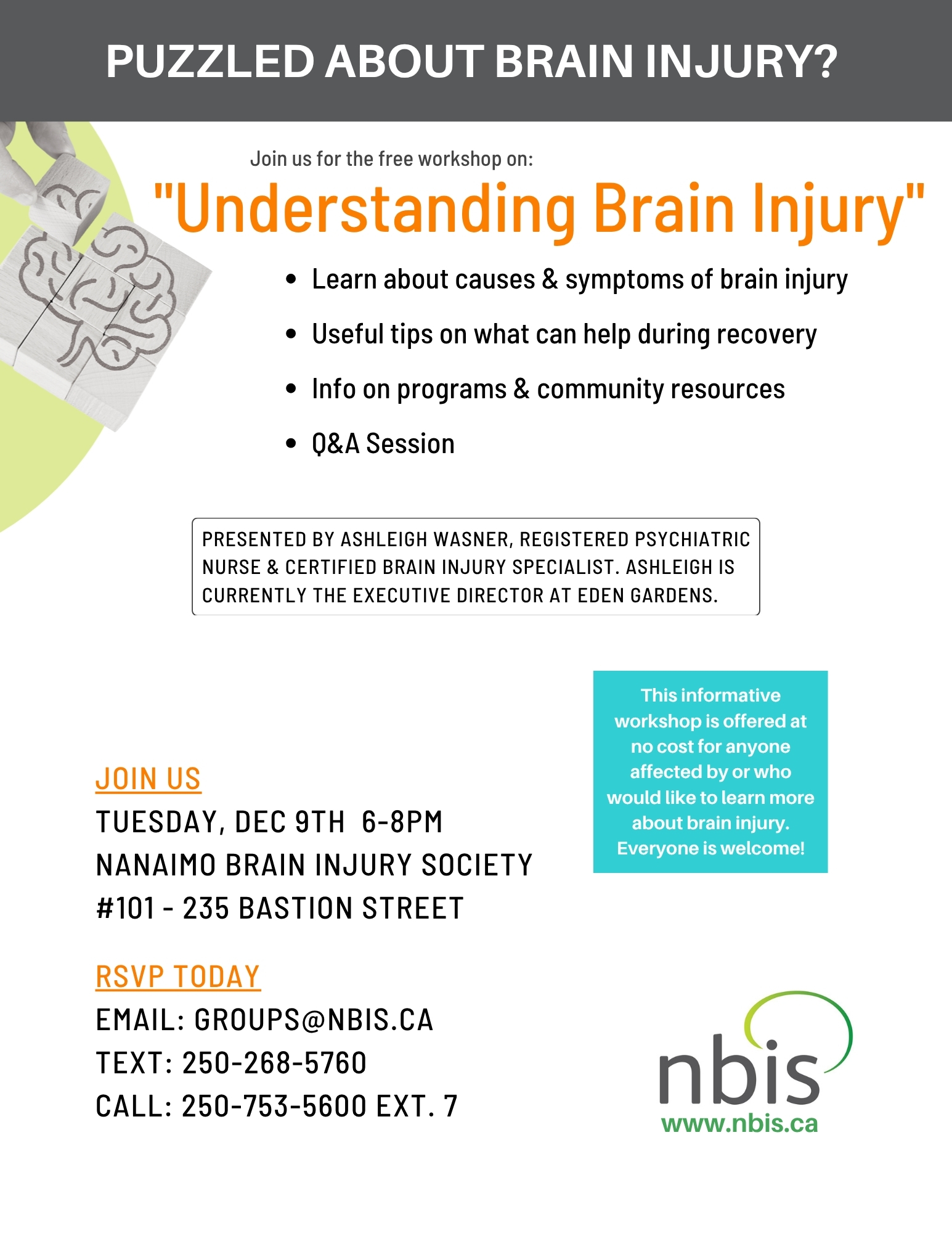 Presented by Ashleigh Wasner, Registered Psychiatric Nurse & Certified Brain Injury Specialist. Ashleigh is currently the Executive Director at Eden Gardens here in Nanaimo.